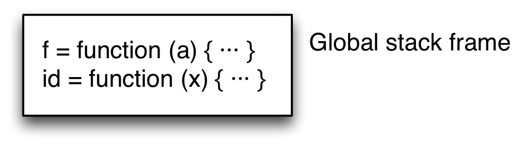 Step 1. Initially, there are only the global variables id and f on the stack.