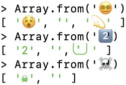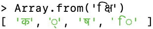 For example, the Devanagari kshi is encoded by 4 code points. We use Array.from() to split the string into an Array with code points: